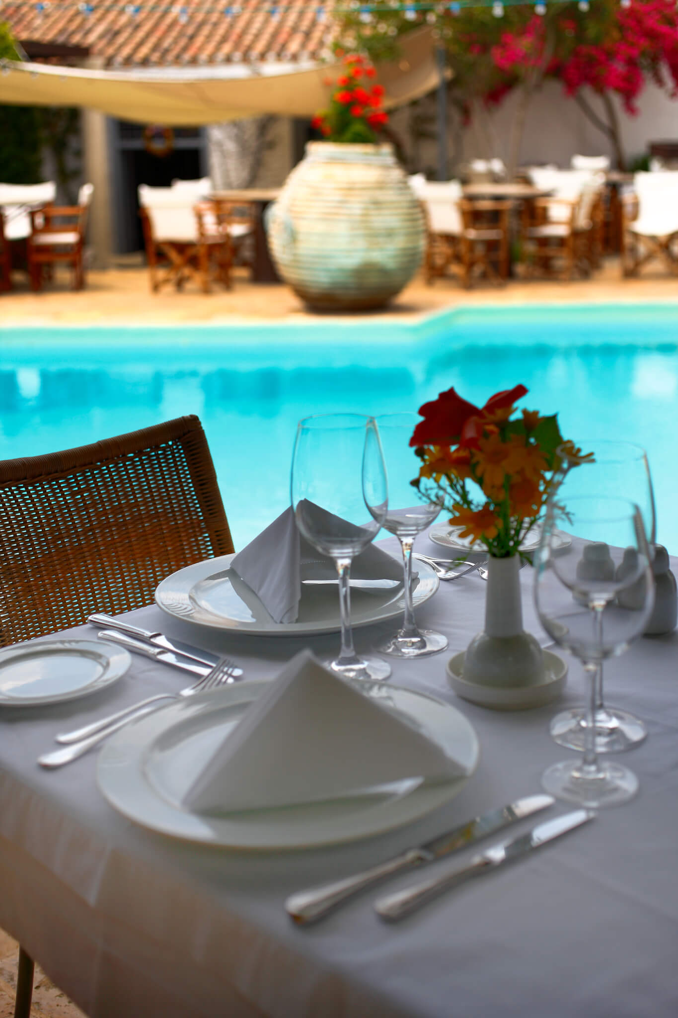In Hydra's famous Bratsera Hotel, their in-house restaurant has certainly proved itself as one of the finest foodie hotspots on the island. The ambiance alone—an intimate setting by the pool—reeks of high-class sophistication. With bougainvillea trees proving some much-needed pop of color, you can sense, even before you take a bite, that you're in an upscale place that's definitely worth your money. And speaking of food, one of the great things about Bratsera restaurant is that it serves up a seasonal menu, allowing only the freshest and most appropriate dishes for the times. You're in for a surprise here, that's for sure!