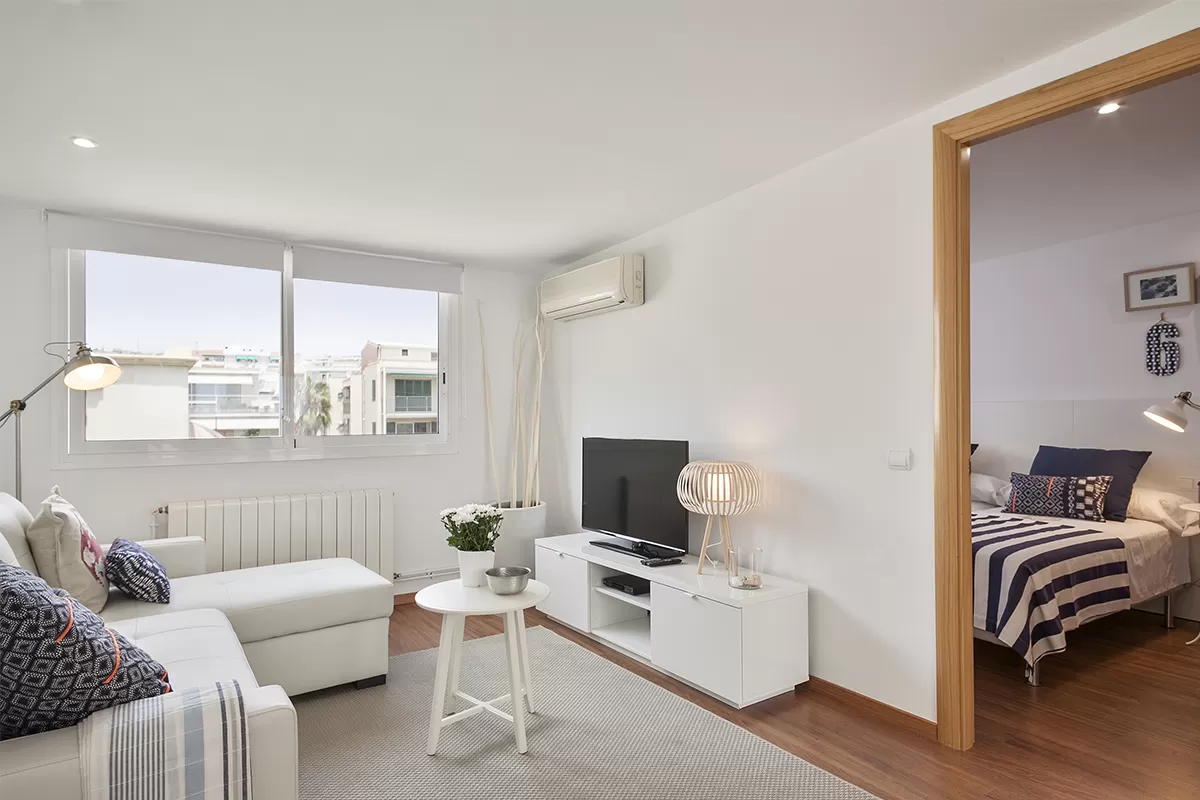 This bright 40-m2 apartment features one double room, a fully equipped kitchen and a refined living room with a double sofa bed and a terrace so you can soak up the sea as if you were on a boat.