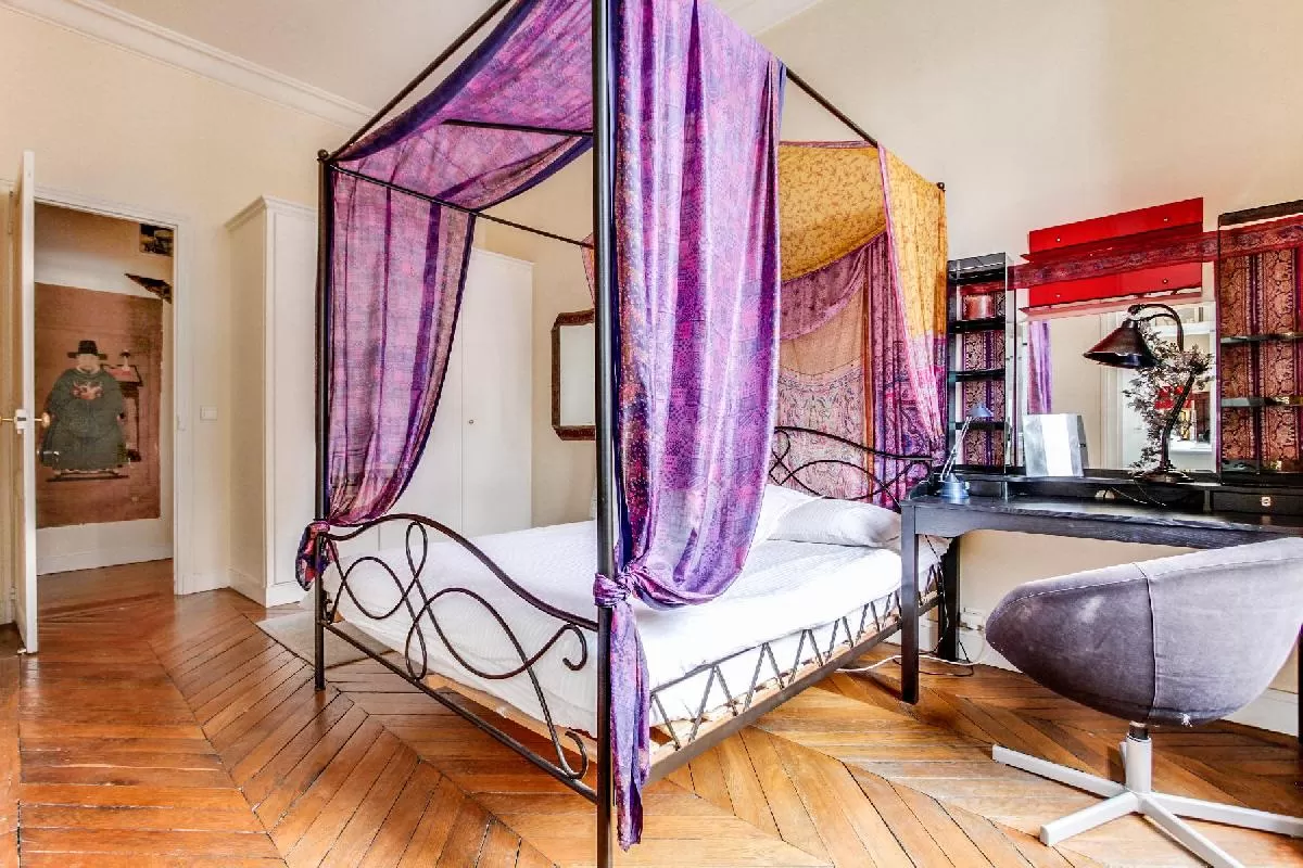 The holiday home boasts awesome interiors with amazing furnishings. It features tall corniced ceilings, polished herringbone wooden floors, and blushing walls, not to mention French doors and Juliet balconies that draw in plenty of fresh air and natural radiance. The living and dining rooms are adorable and welcoming, and these are perfect for either quiet lounging or wholesome merriment. The kitchen is a spacious wonderland for chefs of all experience levels, and it contains the essentials for whipping up mini-banquets and concocting sparkling drinks. It also has a dinette.